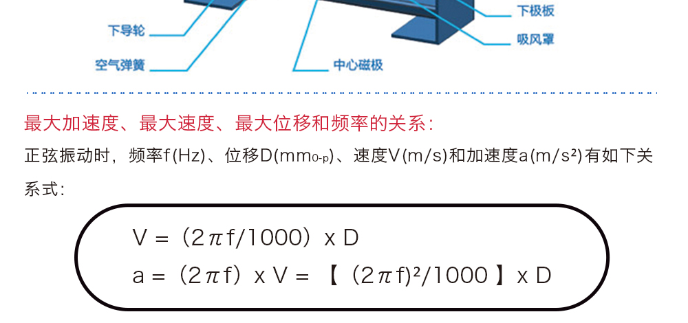 產(chǎn)品型號: 品牌:劍 喬 用途:正弦振動時,頻率f(Hz)、位移D(mm0-p)、速度V(m/s)和加速度a(m/s2)有如下關(guān)系式:咨詢熱線:13829135130